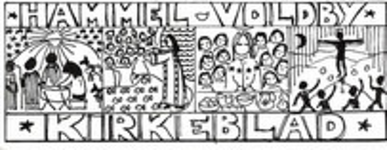 Logokonkurrence. I 1983 udskriver Hammel og Voldby menighedsråd en konkurrence til et nyt bladlogo. De præmierede forslag er tegnet af Lene Fogtmannn (til venstre) Ove Rosenkvist (i midten) og Ib Ulrich (til højre). Fogtmanns forslag anvendes som kirkebladets logo i 1984, Rosenkvists 1985-91.